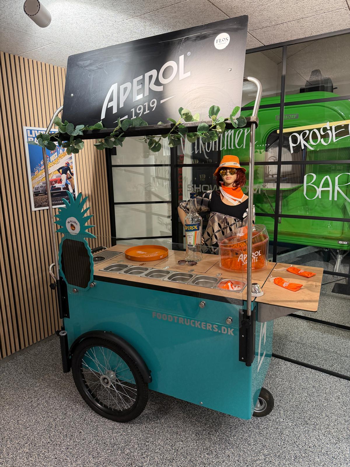 Paul & Ernst Beverage Bike/Beer Bike. Super fin bar vogn med fadølshane, samt plads til 2 fustager og kulsyre. Cyklen er el-drevet, så den er til at køre på. Batteri på køleren, så du er uafhængig af strøm i ca. 6 timer. Arbejdsbordet som slås op over siddepladsen når der holdes stille.